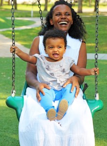 Coket and mama on swing