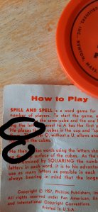 Spill and Spell originated in 1957. The set in our basement has an imprint that it was made in Newton, Massachusetts.